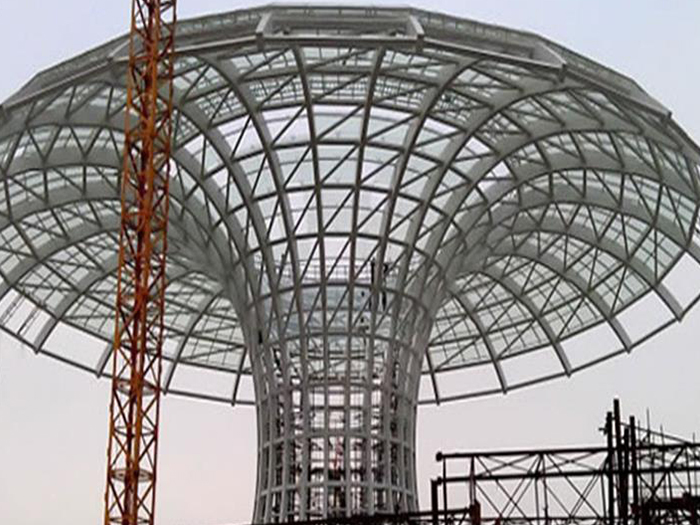 二、球形网架结构因其结构新颖,受力合理,自重轻、用钢量低等优点。如大型体育场馆球形即墨螺栓球网架、公共场馆球形网架、电厂即墨螺栓球网架、水泥工业球形网架、仓储物流球形网架、即墨干煤棚工业球形网架、即墨收费站即墨加油站球形网架、展览中心、影剧院、商场、航站楼、候车厅、工厂即墨车间、仓库、电视塔等球形螺栓球节点网架。国内球形网架结构主要分为:即墨焊接球节点网架及螺栓球节点网架两种。螺栓球节点网架其构件工厂内加工量较大,现场安装便捷,适用于现场工期紧,即墨施工条件、用电量受制约,网架形状复杂、即墨杆件定位困难的异形结构。螺栓球节点球形网架系统基本由即墨杆件、螺栓球、支撑支座等组成。按照节点形式可分为交叉即墨桁架体系、四角锥体系、三角锥体系等。支撑方式多为固定支座支撑。对于大面积、大跨度及有特殊受力或伸缩要求的网架结构可采用橡胶支座、滑移支座、球铰支座等支撑形式,以满足结构自身的受力稳定、均衡,便于内力释放等设计要求。